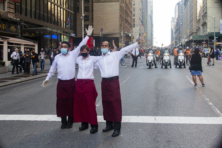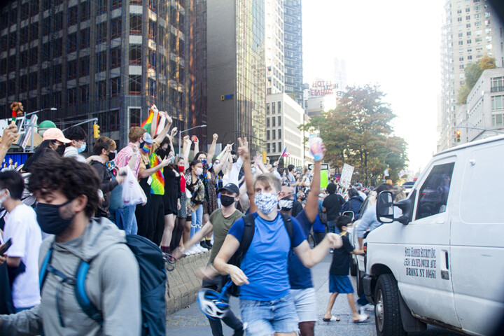 When the election was announced, spontaneous groups flocked to Columbus Circle (in front of Trump Hotel), Union Square, Times Square, Barclay’s Center, Harlem’s 125th St. on foot, in cars, on bicycles, trains and buses. There were organized groups assembling as they marched to Times Square.